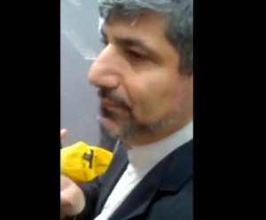 The Algemeiner has located two videos of the incident involving Mehmanparast. The first is from inside a crowd of people as they shout and push the Iranian spokesman while the second seems to be taken from an office building above 48th street and 2nd avenue in Manhattan, showing Mehmanparast as he is followed by protesters before being ushered into an NYPD vehicle.