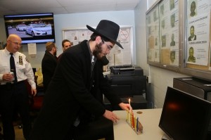 Levi Rosenblatt recited the traditional blessing “She’asa Nissim—Who has made miracles” and lit the seven Hanukkah lights. The gathering took place at the 71st NYPD precinct. In attendance were local Jewish residents and officers from the 71st and 77th precincts, the two station houses that protect Crown Heights.